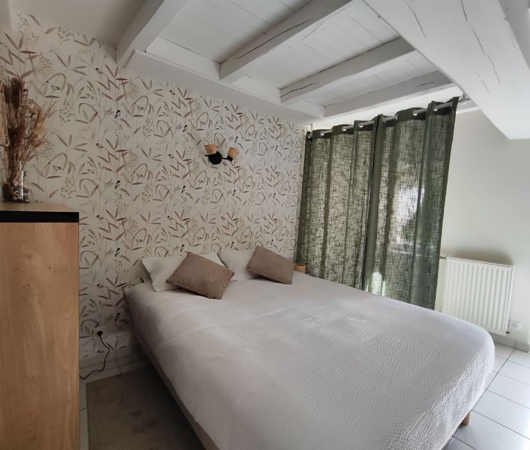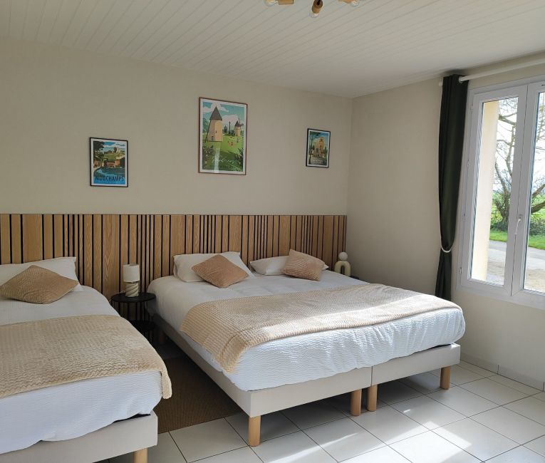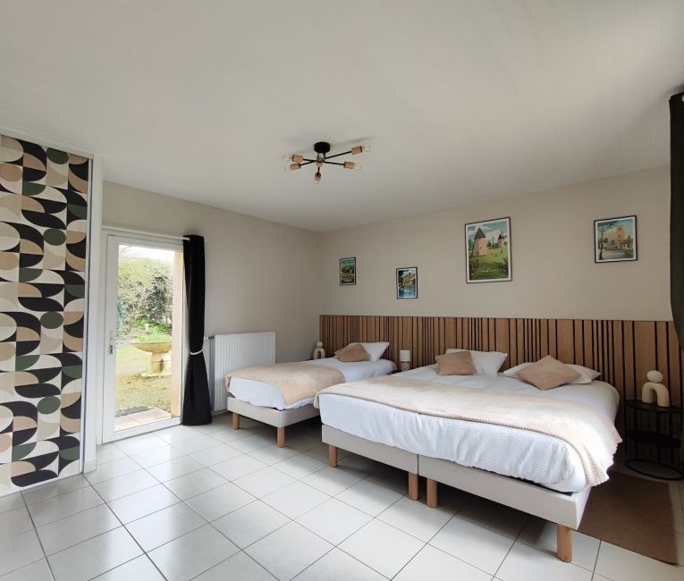 Découvrez L’Herbretaise, une chambre d’hôtes double de 40 m² pensée pour accueillir jusqu’à cinq personnes (7 grâce à l’ajout d’un lit d’appoint et d’un lit bébé en supplément).