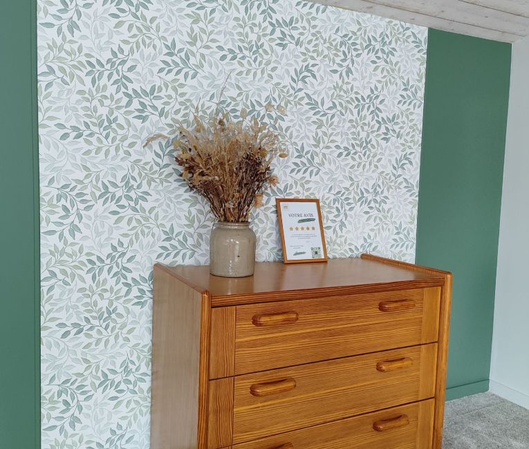 Nous avons souhaité y créer une atmosphère apaisante avec sa décoration végétale inspirée du bocage vendéen, où dominent les tons naturels et les matières douces.